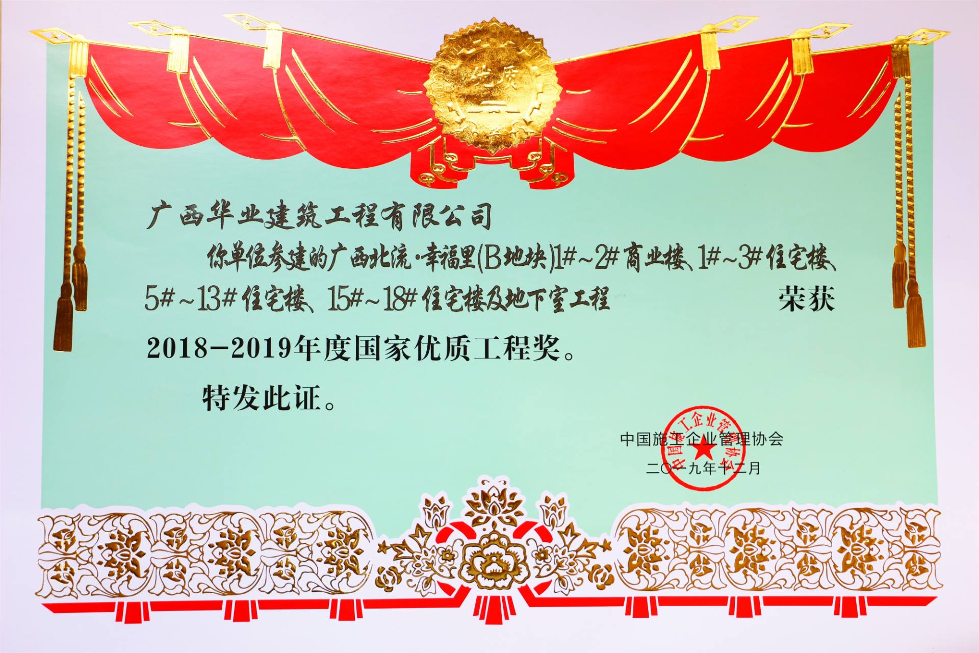 項(xiàng)目榮譽(yù):2019年全區(qū)建筑施工安全標(biāo)準(zhǔn)化觀(guān)摩項(xiàng)目 -