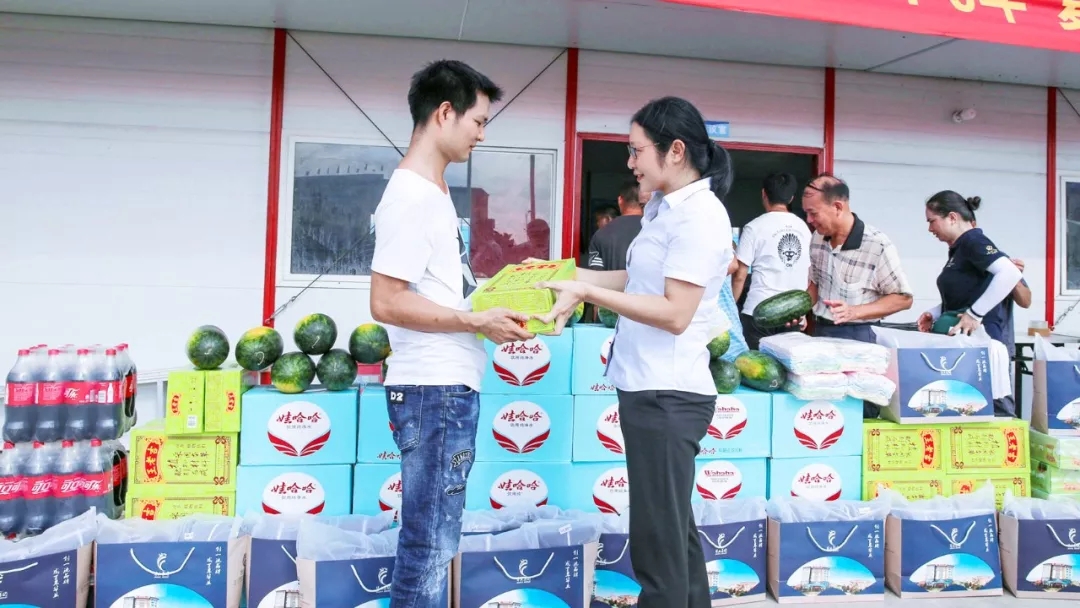炎炎夏日,酷暑難當(dāng)。為了確保施工項目工地員工清涼工作、安全度夏,創(chuàng)造一個清涼愉悅的工作環(huán)境,7月18日當(dāng)天,集團工會主席鐘麗霞代表公司為防城港市保稅物流中心(B型)項目部的員工送去一批清涼飲品。一片冰鎮(zhèn)的西瓜、一瓶清涼的飲料,把“涼爽”送到了每位一線員工的“心”上。切實把關(guān)心員工生活、關(guān)注員工健康工作落實到實處,為大家安全度夏提供有力的后勤保障。